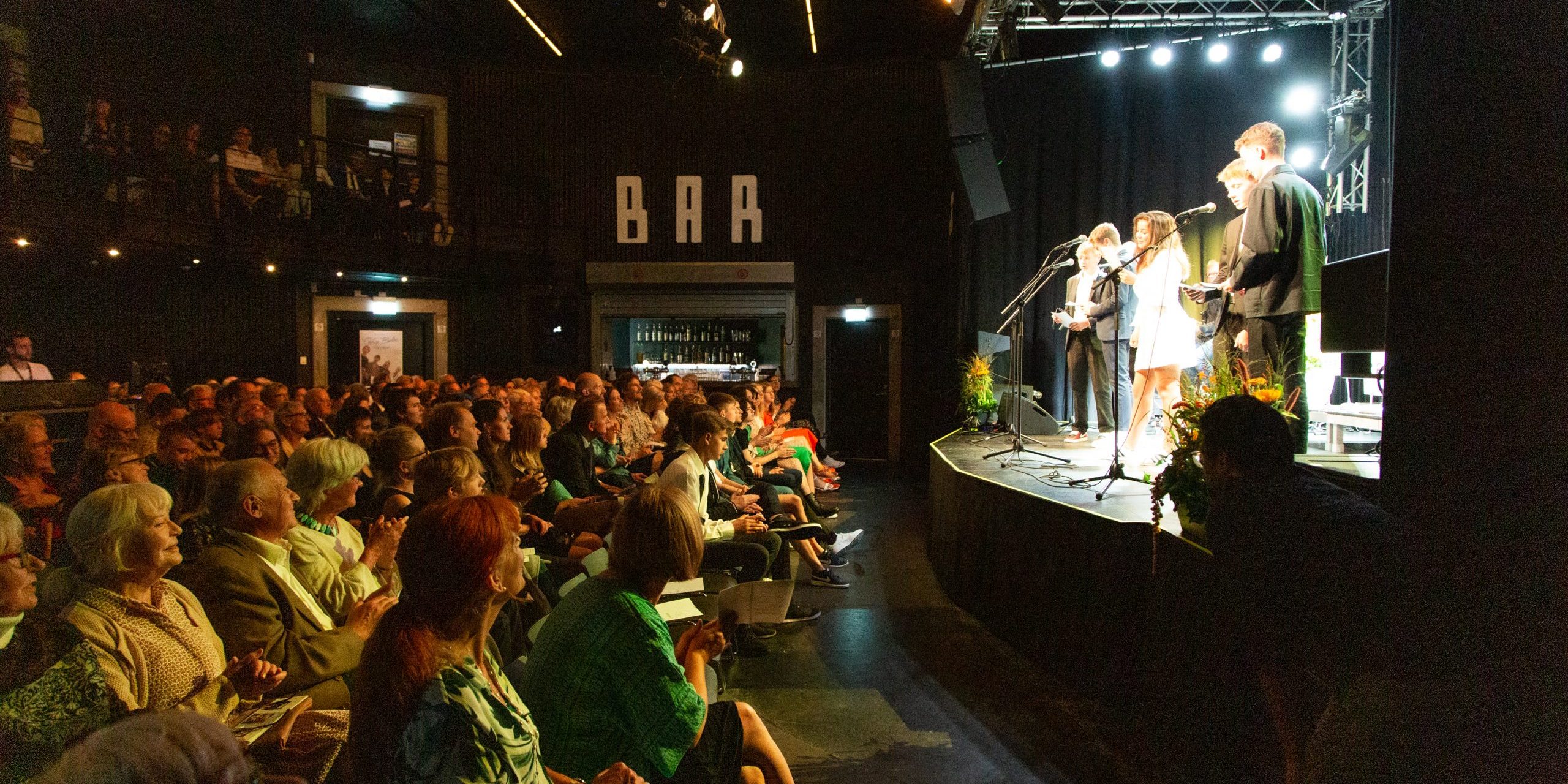 20 konfirmander træder op på scenen. Med sig har de nogle store skilte med ordene ”Ansvar”, ”Kærlighed”, ”Fællesskab” og ”Individets ukrænkelighed”. Det er et indslag, som de unge mennesker selv har stået for, hvor de læser og synger om syv humanistiske værdier. I dag vælger de selv at stå på scenen og fortælle om dem.